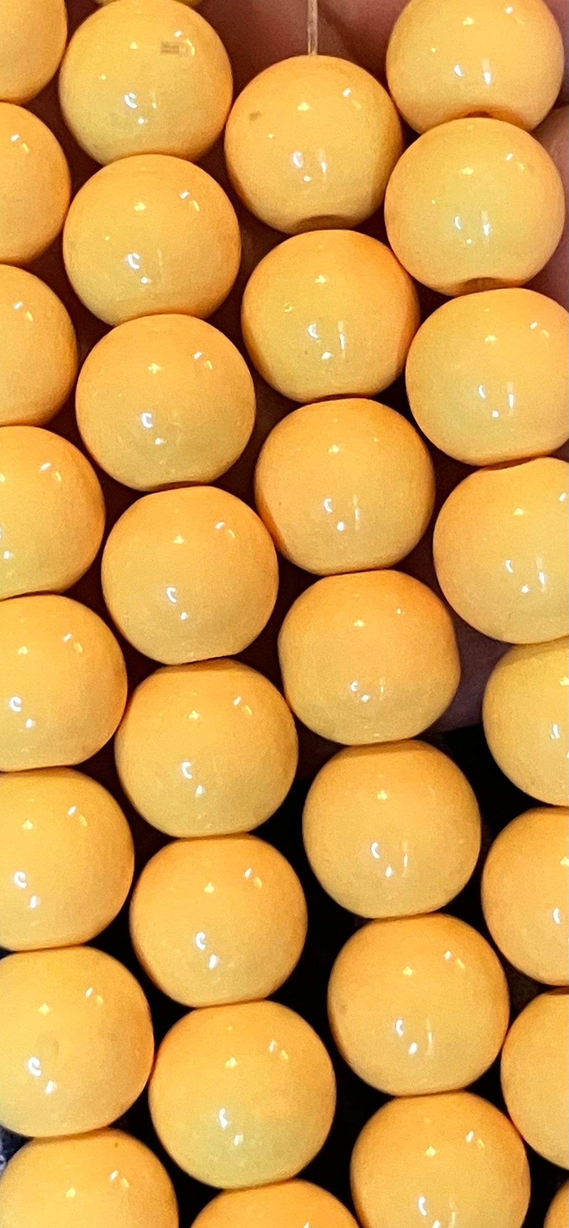 40 beads per strand of 10 mm glass beads. These beats are used for making bracelets or other DIY projects. Price is listed per one strand.