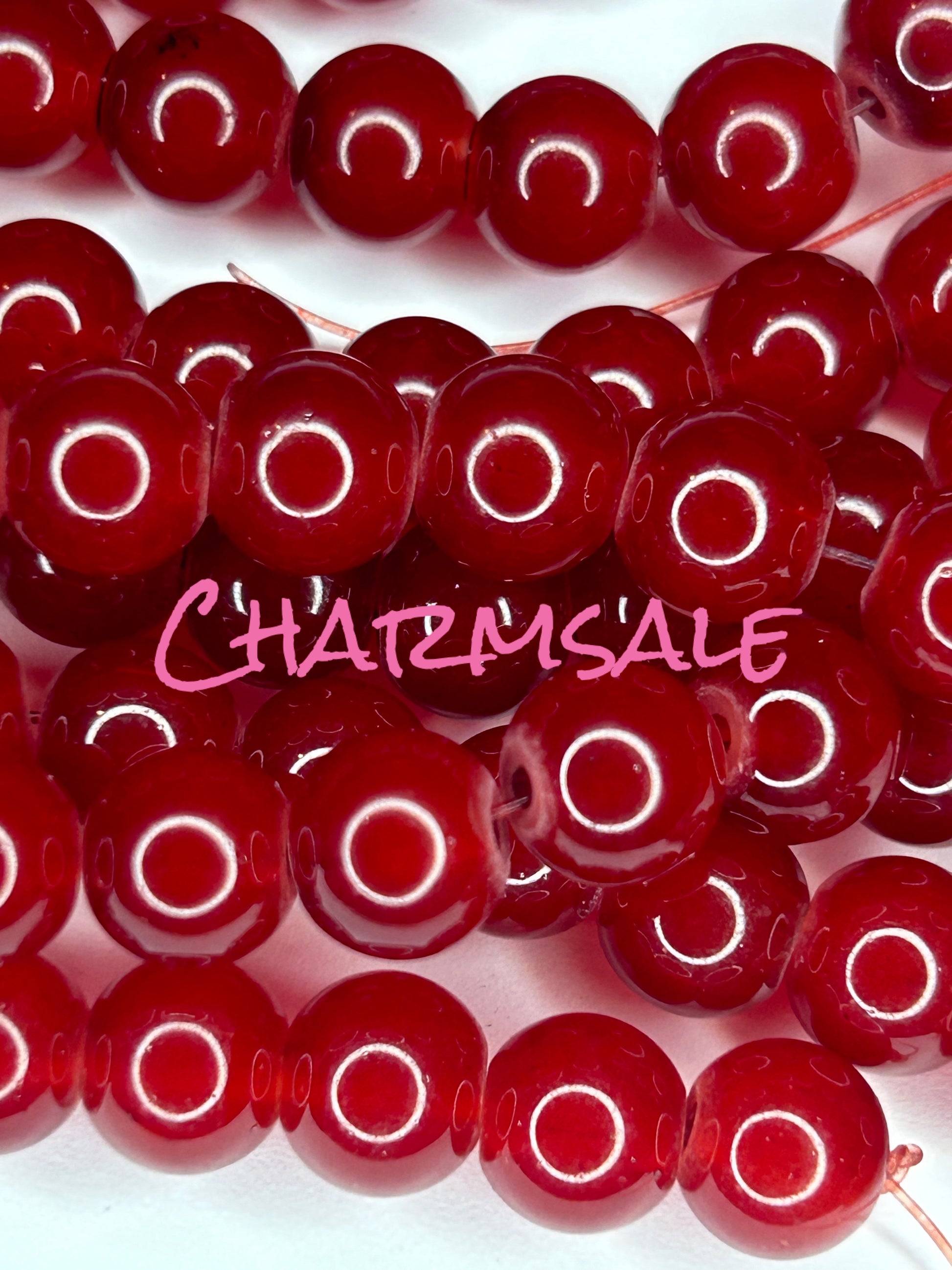 50 beads per strand of 8mm glass beads. These beads are intended for making bracelets or DIY projects.