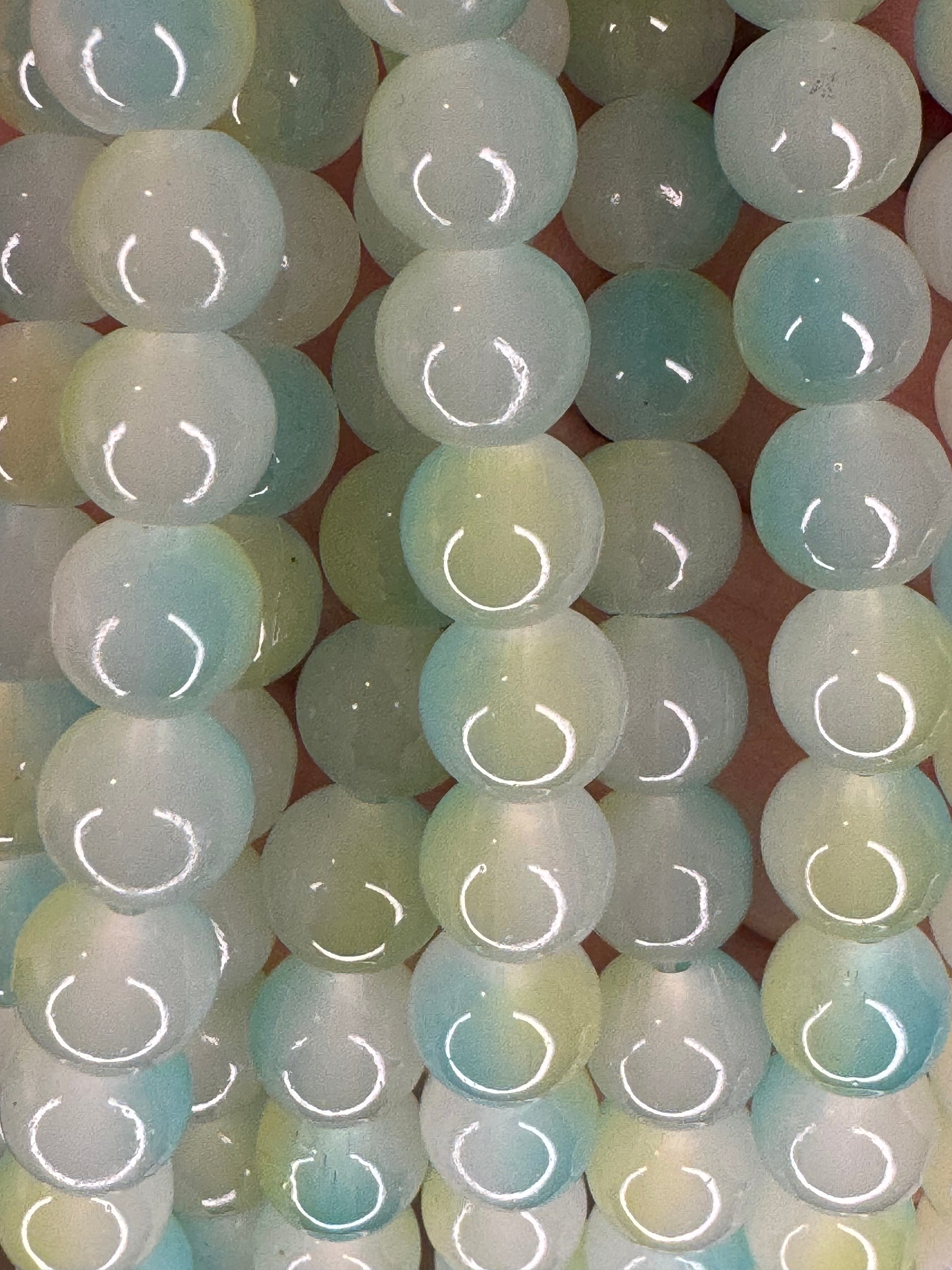 50 beads per strand of 8mm glass beads. These beads are intended for making bracelets or DIY projects.