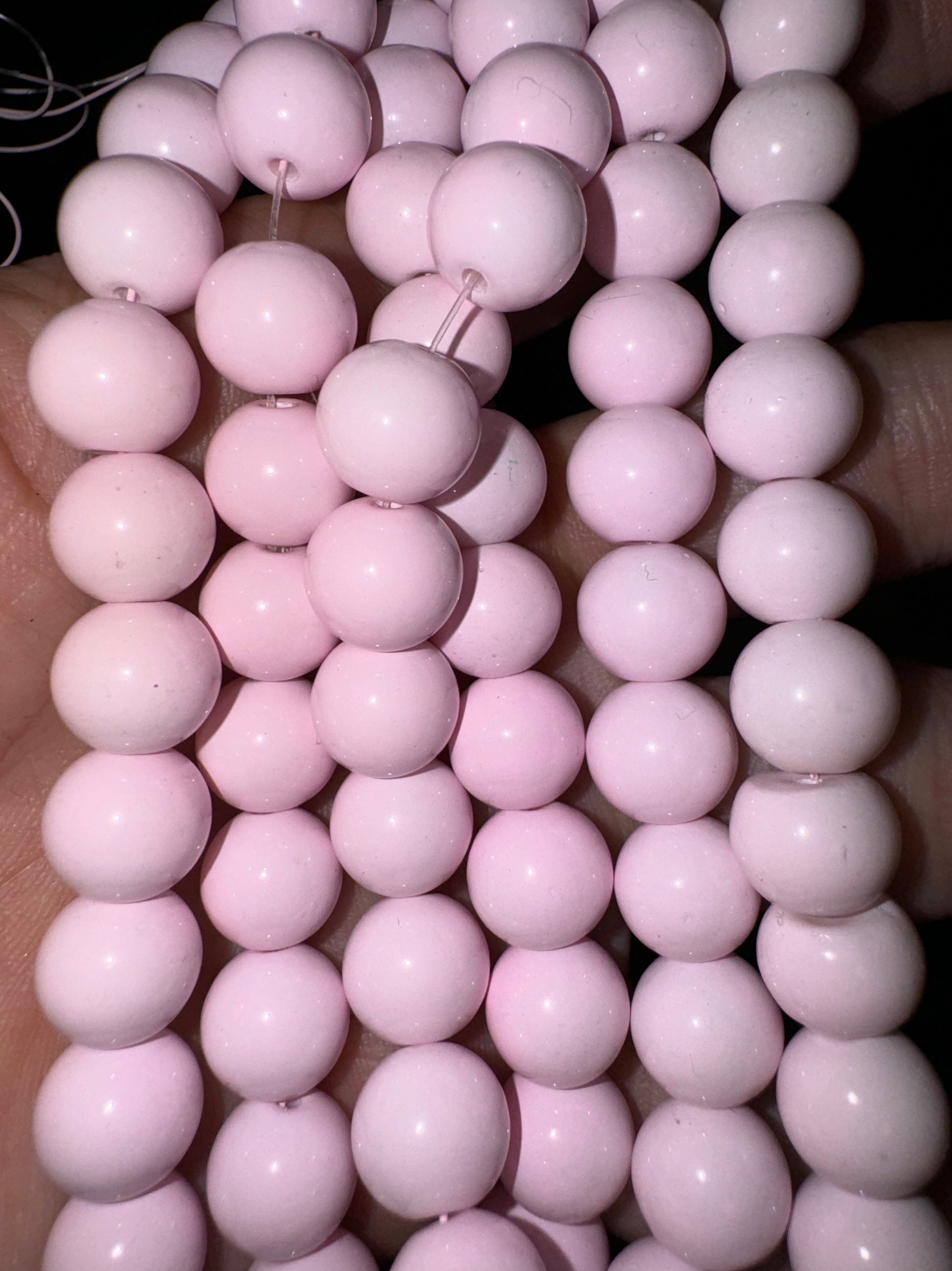 40 beads per strand of 10mm glass beads. Used for making bracelets and or other DIY projects. List price is per one strand of beads.