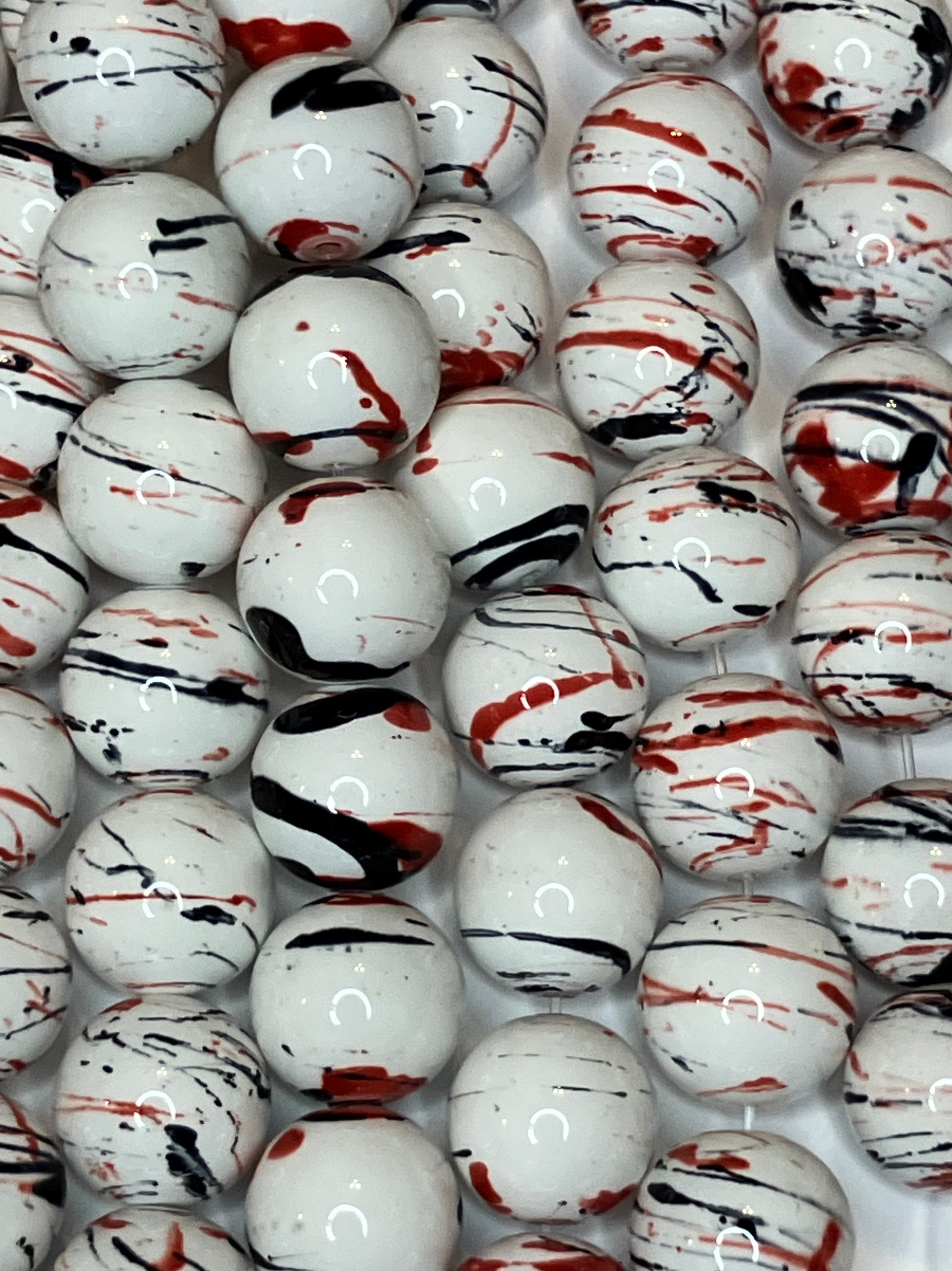 White red and black 40 beads per strand of 10mm glass beads. These beats are used for making bracelets or other DIY projects. Price is listed per one strand.