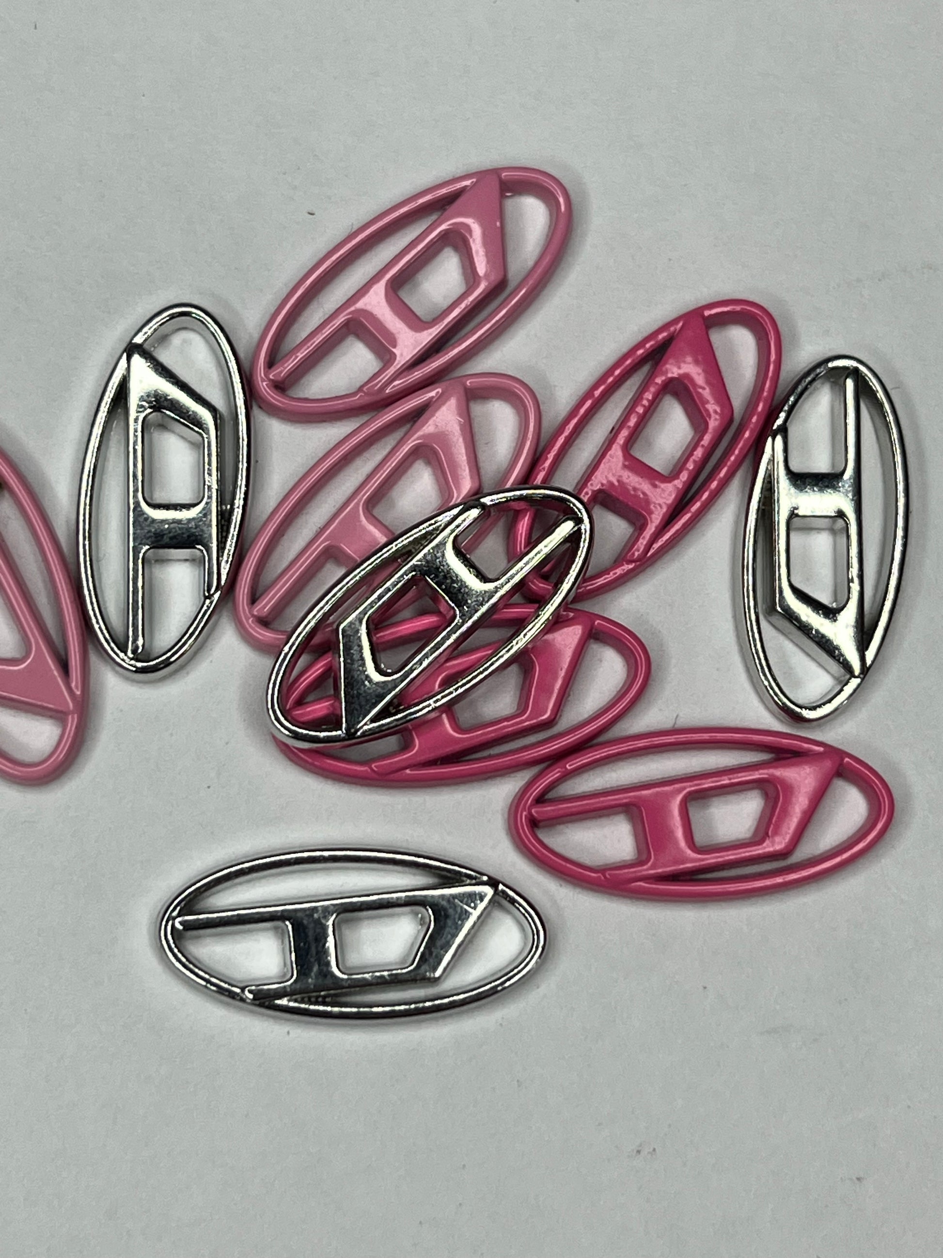 These flat back charms are used for DIY projects and they are sold individually. Comes in silver pink and hot pink.