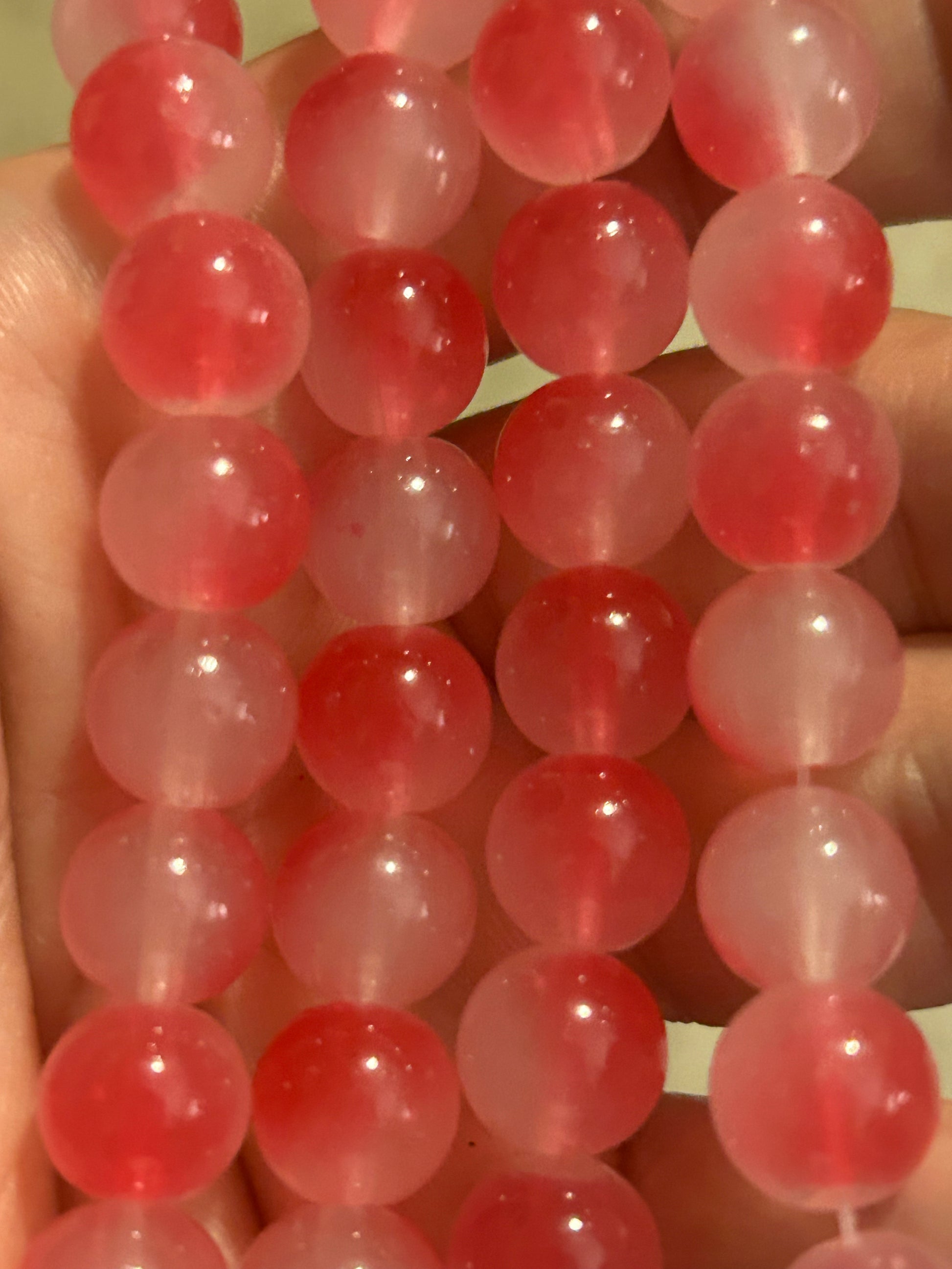 40 beads per strand of 10mm glass beads. Used for making bracelets and or other DIY projects. List price is per one strand of beads.