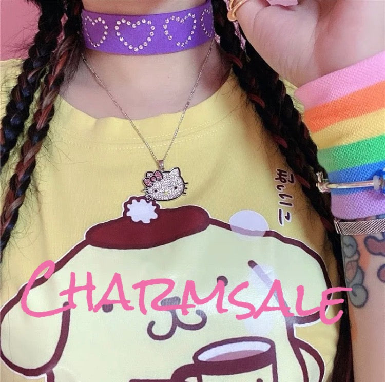 Silver hello kitty necklace bling pendant